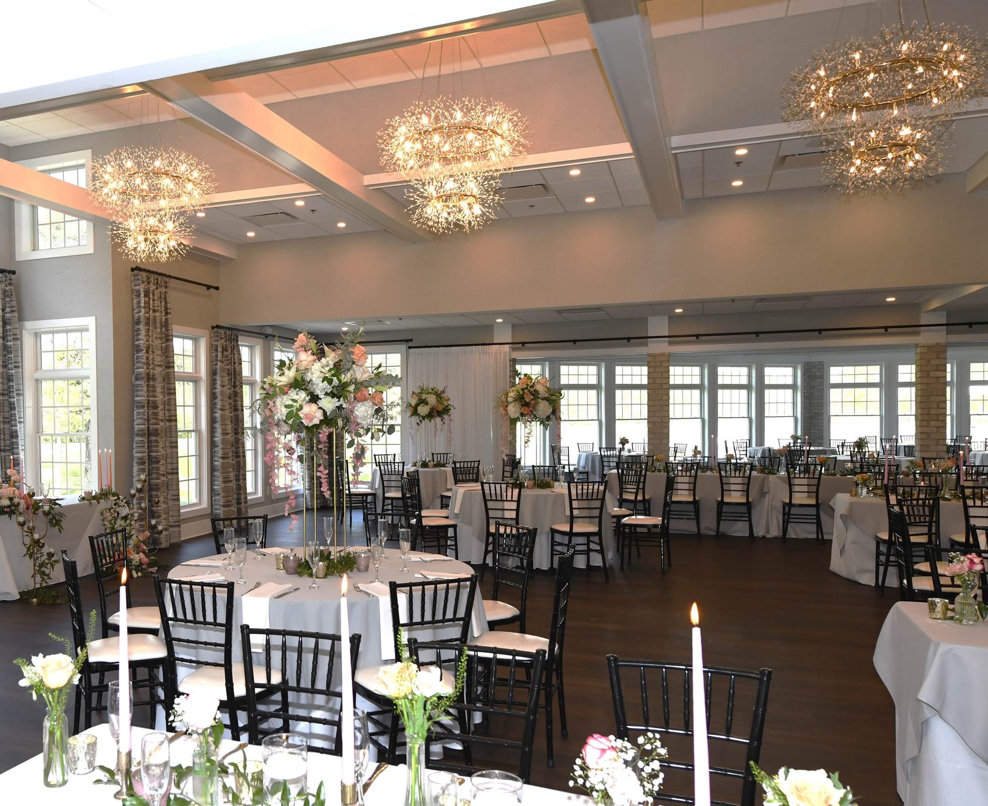 Harbor Pines Golf Club, renowned for its lush greenery and serene environment, has recently unveiled a newly renovated wedding space that epitomizes modern luxury. Nestled amidst the picturesque golf course, this venue provides a peaceful and elegant setting for both ceremonies and receptions. Adding to its charm, the newly opened and lively bar & grill, The Roost, offers couples the perfect spot to host a memorable wedding afterparty, just steps away from the main event.
