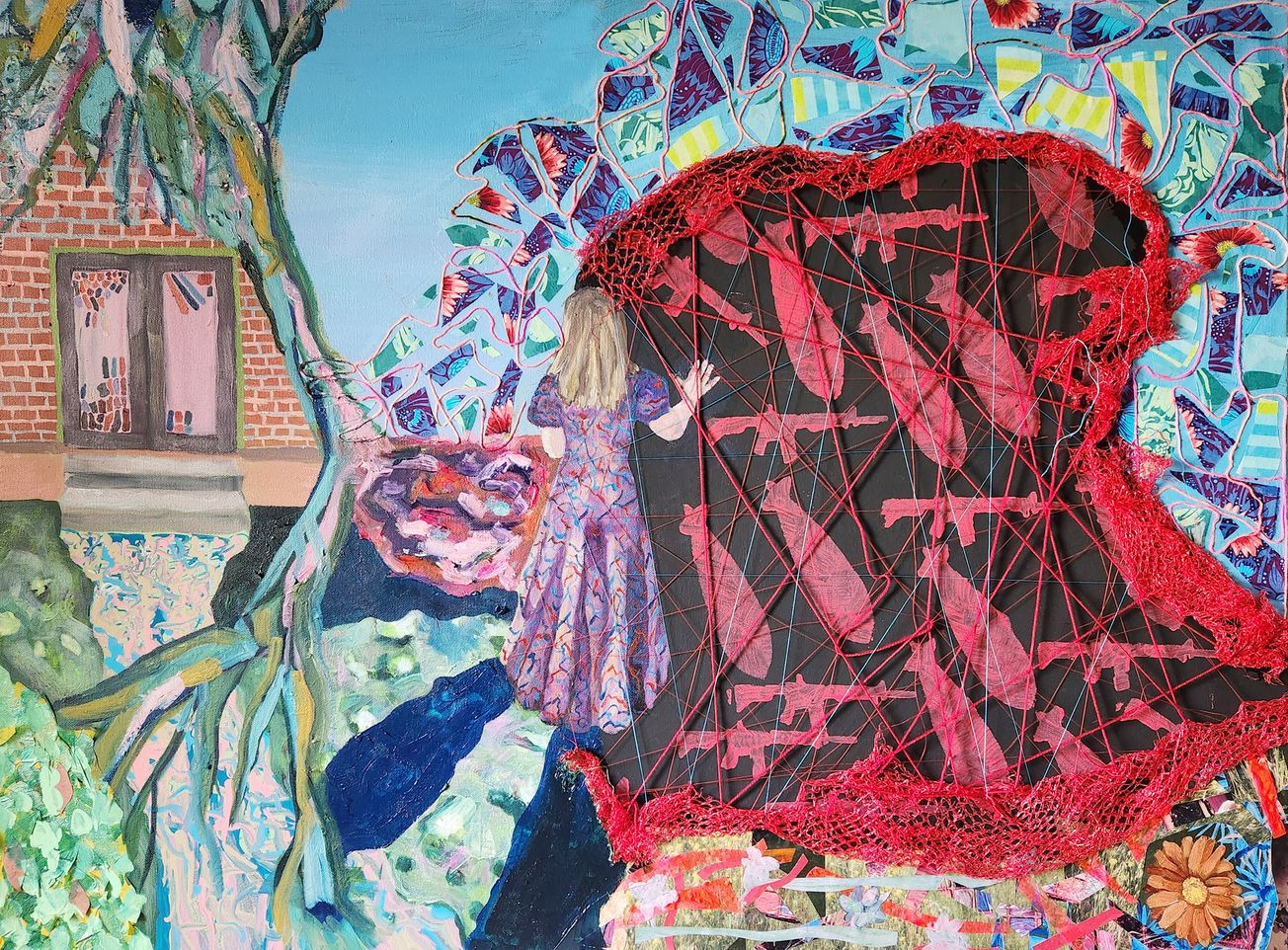 “I chose to show the consequences of climate change in my mixed media painting. If we keep going the way we are, it will bring unpredictable weather, forest fires, hotter unbearable temperatures, hurricanes, and floods,” says Bayonne, NJ artist Kristen Martin-Aarnio. As witnesses from around the globe, all this change comes from a scarcity of resources. You don’t have to travel far to see lack of water, rising sea levels, and displacement, eventually leading to people fighting wars over resources. Kristen feels that mother nature will prevail, but humans will not if we keep abusing a livable system.