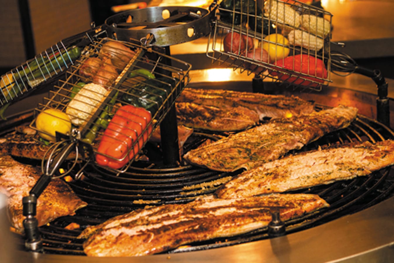 The restaurant was recently expanded to approximately 7,500 square feet, with seating for 350 guests in a warm, modern design. There are intimate tables, large tables for parties, and high-top bar seating in the center to add a hip flare to the space. The buffet is set up in stations so that guests need not stand in a long line.