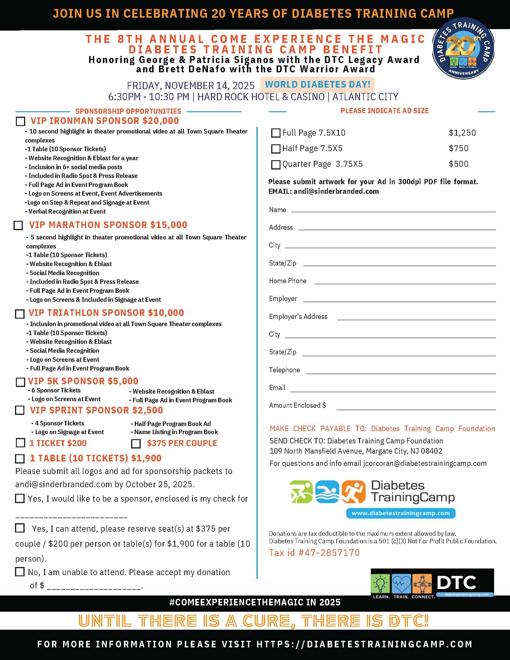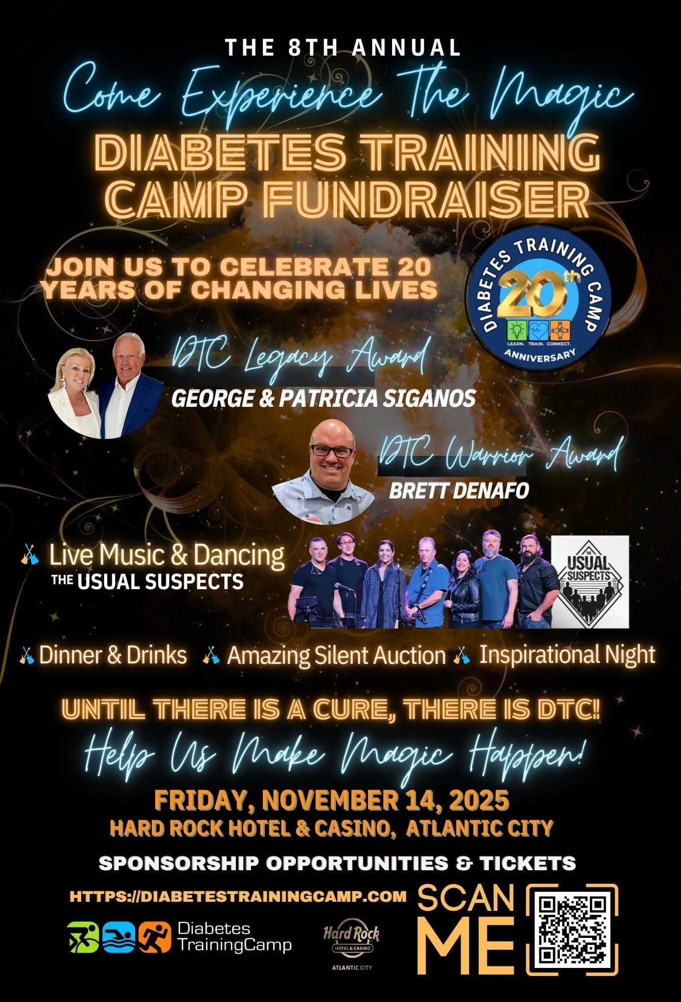 For two decades, Diabetes Training Camp (DTC) has been transforming lives—not just through education and fitness, but through connection, confidence, and celebration. This year, the nonprofit marks its 20th anniversary with the 8th Annual Come Experience the Magic fundraiser gala on World Diabetes Day, November 14, 2025, at the Hard Rock Hotel & Casino in Atlantic City. And trust us—it’s more than a fundraiser. It’s a movement.