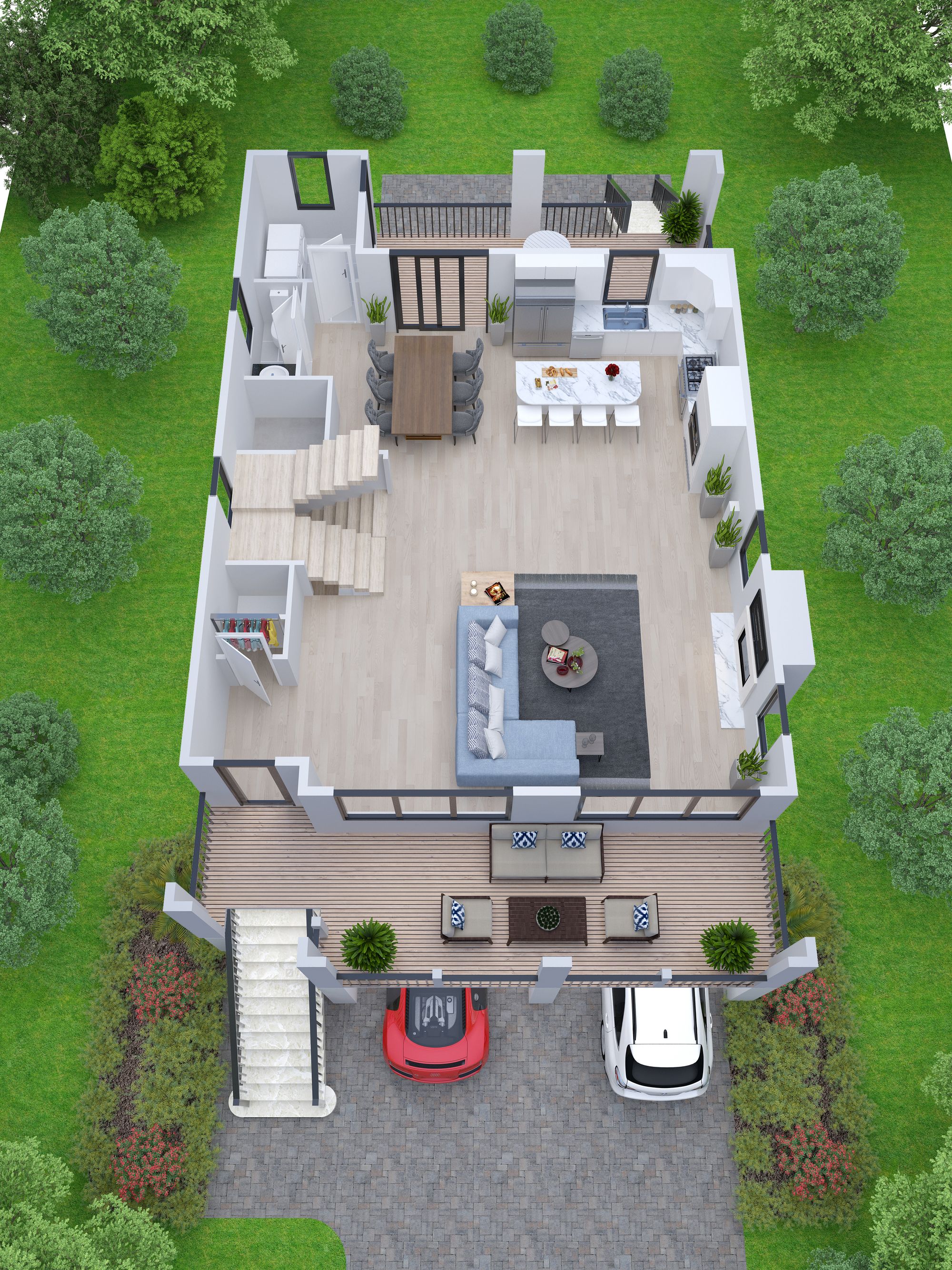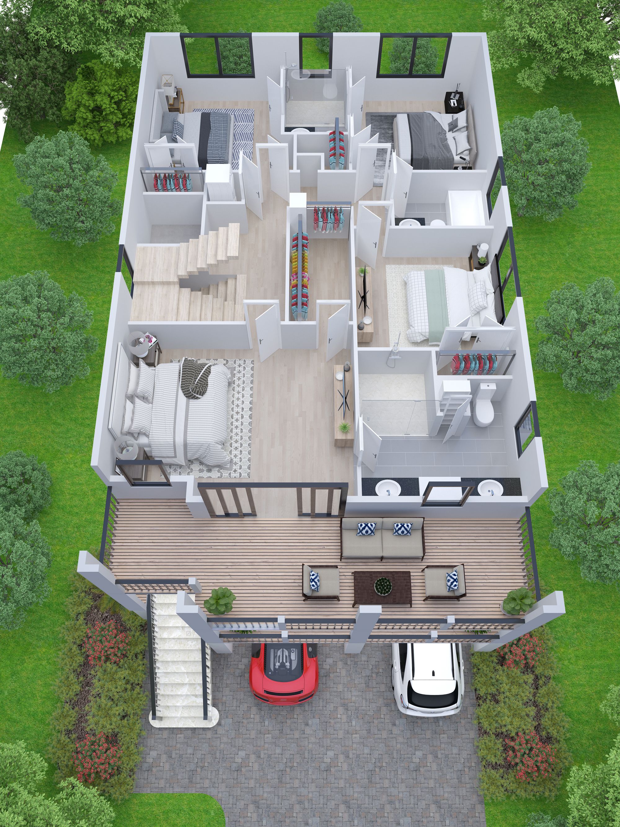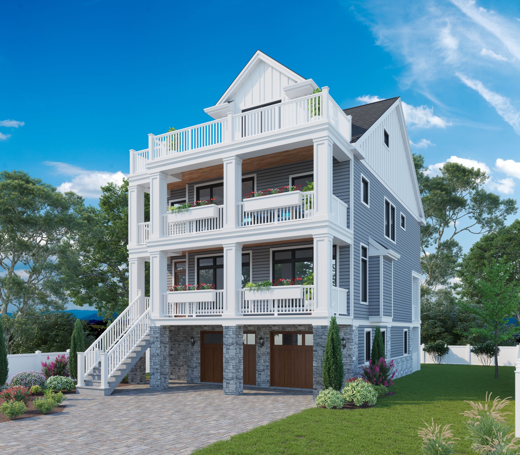 On the first floor, the large open floor plan will feature plenty of space to entertain. Guest can mingle in the open family room and gourmet kitchen. The kitchen will feature high-end stainless steel appliances, a large center island with ample counter seating, and a generous dining area. The first floor will be completed with a mud or utility room and a powder room, so that beach living can be enjoyed to its fullest. The second floor boasts five spacious bedrooms, including a generously-sized primary suite with a large walk-in closet and gorgeous ensuite bath. This spectacular new home also includes large front decks with stunning views of the beach, ocean, and boardwalk. This is the perfect place to enjoy your morning cup of coffee in the shade or late afternoon cocktails in the sun. There is a large two-car garage underneath the house. Additional amenities can easily be added if the buyer is interested. There’s room for an elevator and the oversized lot can accommodate an optional pool.