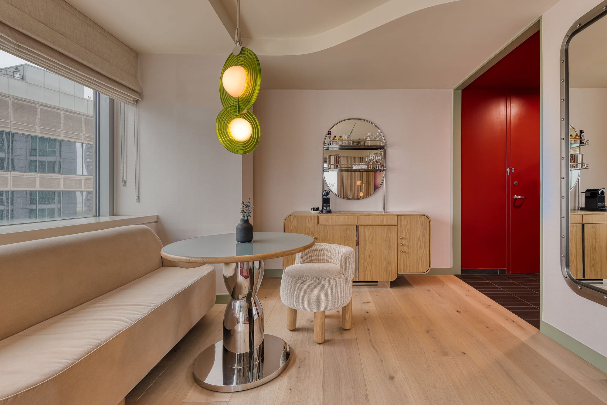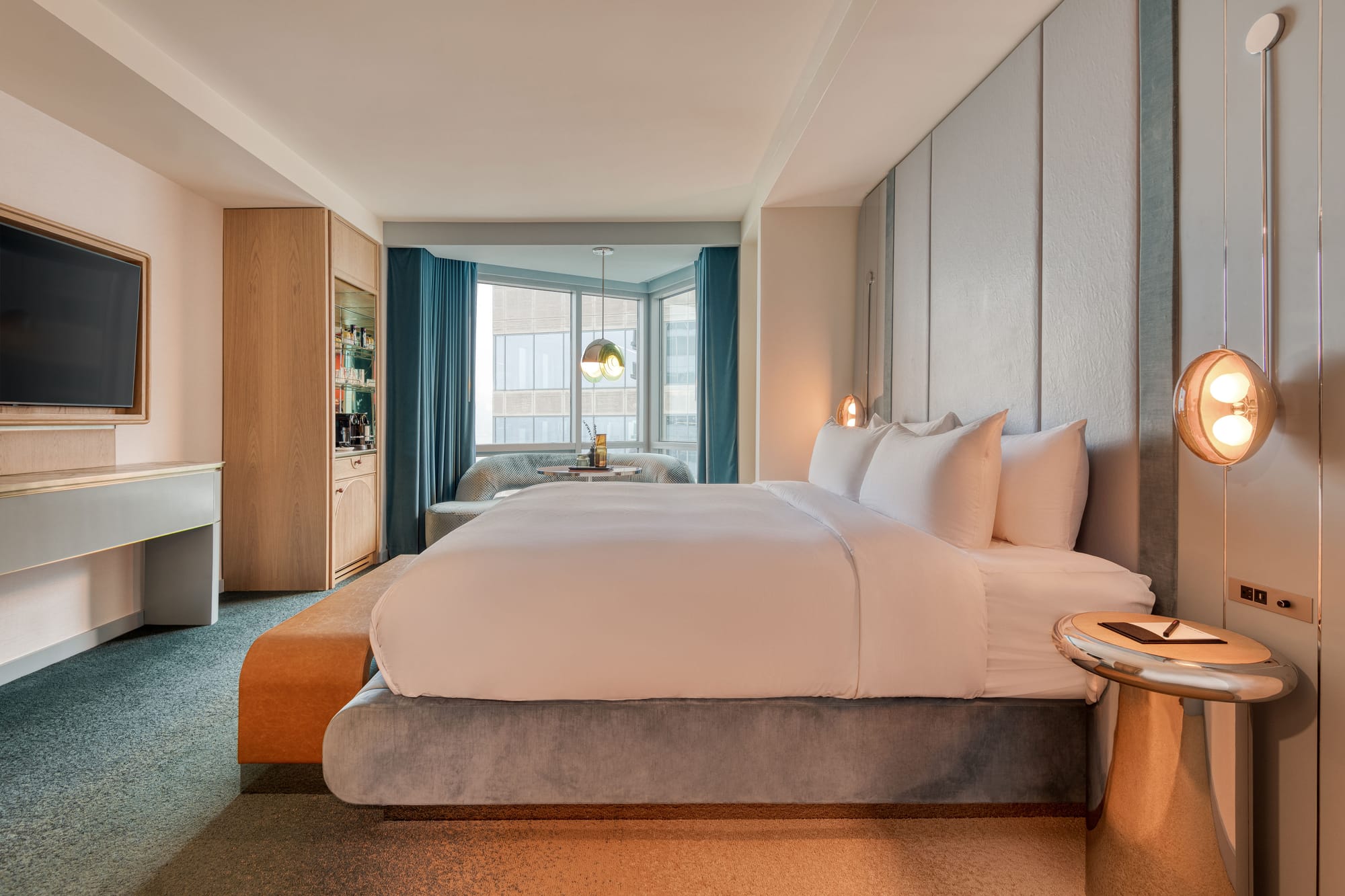 The newly launched Living Room marks the first phase of W Hoboken’s transformative renovation. More than a lobby, it’s a high-design gathering space that pulses with curated cocktails, skyline views, and a rotating lineup of events. Open daily from 2 PM to midnight, it’s where guests and locals mingle over bites and beats, setting the tone for what’s to come: fully redesigned guest rooms and suites later this year.