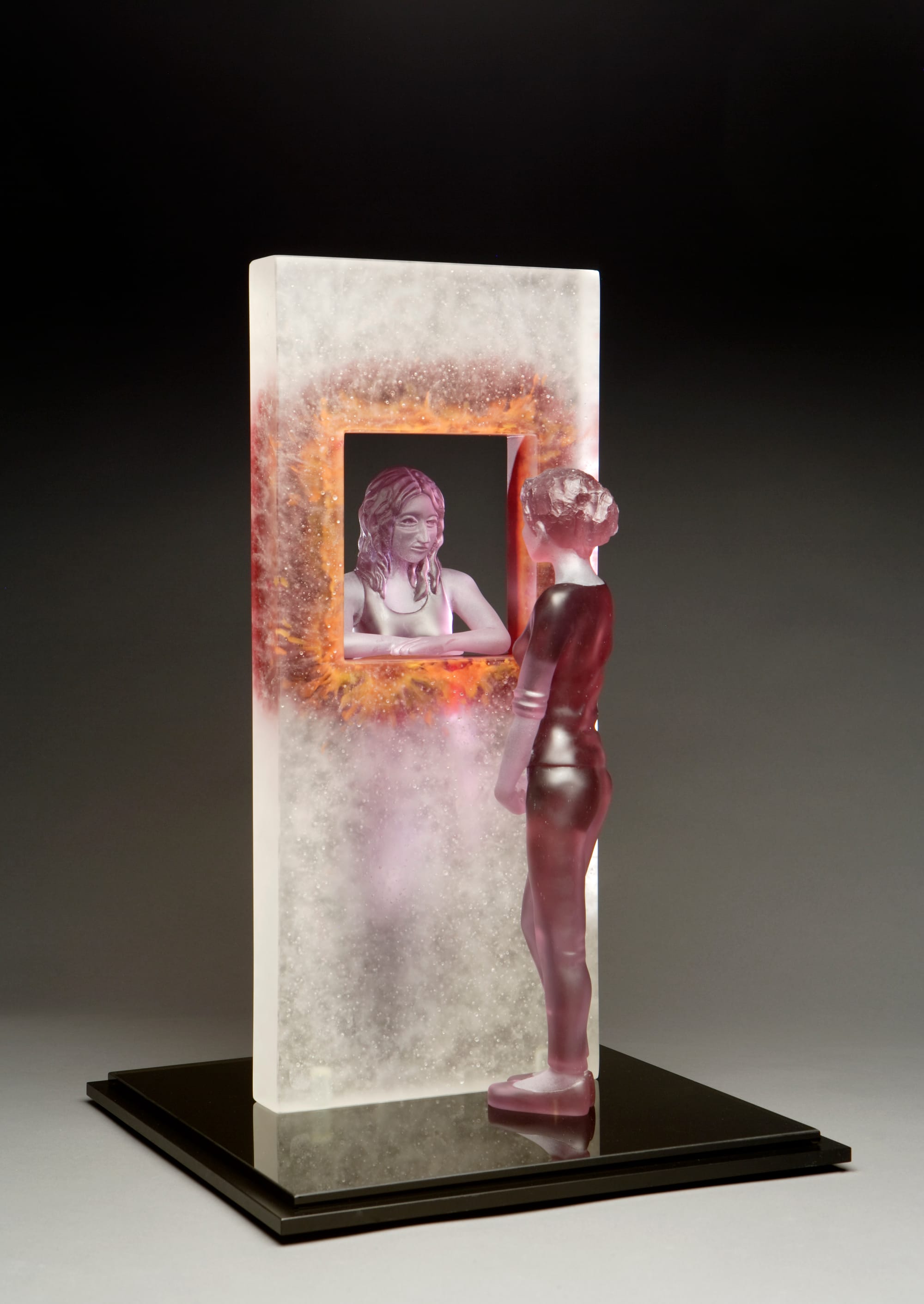 Highlights from the collection include many renowned glass artists. Oben Abright, based in Oakland, California, uses glass, aluminum, bronze, and other materials to explore human emotion and the complexities of the human condition. His sculptures aim to reveal internal struggles through the transparency of glass, capturing fragility and light. Artist Lucy Lyon, known for her evocative cast glass sculptures, explores themes of solitude and human interaction. Influenced by artists like Edward Hopper, Lyon’s works capture those moments of introspection. Her art is featured in several additional museum collections, including the Imagine Museum in Florida and the Bergstrom-Mahler Museum of Glass in Wisconsin. Toots Zynsky, born Mary Ann Zynsky in 1951 in Boston, Massachusetts, is a renowned American glass artist celebrated for her innovative and colorful vessels. She was among the pioneering students of glass artist Dale Chihuly. Zynsky is best known for developing the "filet-de-verre" technique, which involves layering thousands of fine glass threads to create fused and thermo-formed vessels with rich color palettes and undulating forms. This distinctive method allows her to explore intricate color combinations and textures, resulting in pieces that are both visually striking and tactile.